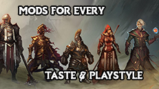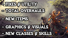 Fixes and non-intrusive improvements for vanilla gameplay, useful time-saving mods, better textures for world objects and effects, new options for character creation, more/new/stronger enemies and bosses, balance changes and expansions to existing classes, mods for casual and hardcore gamers, brand new classes with mindblowing builds, AI improvements and story additions, new skills, armors, weapons and complete game overhauls which breathe a new life into the game by adding brand new mechanics & archetypes - divided into sections for you to pick from - with descriptions, instructions and comparisons when needed - for you to build own ultimate game. Important: please read the F.A.Q. before starting and generally read carefully. Also feel free to join our Discord for DOS 2 and modding related chatting.